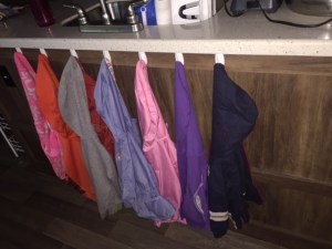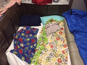 My kids each get a small space designated for their clothes. Most of them pack a duffel bag and they are expected to keep everything in it and put away, not spilling all over the floor. There is a lot of storage room in this camper and everyone’s bags easily fit in a cabinet.
